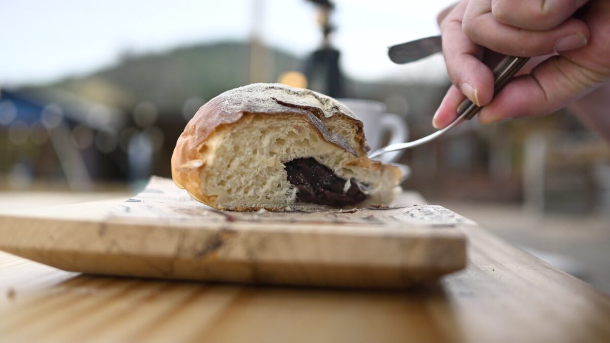 야외테라스에 자리잡고 단팥빵과 카푸치노를 즐겨봅니다.