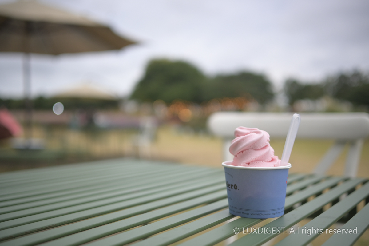 The interior of the cafe maintains a large sense of space without walls, and the tables are arranged low. I had already had coffee before coming here, so I ordered a light ice cream.