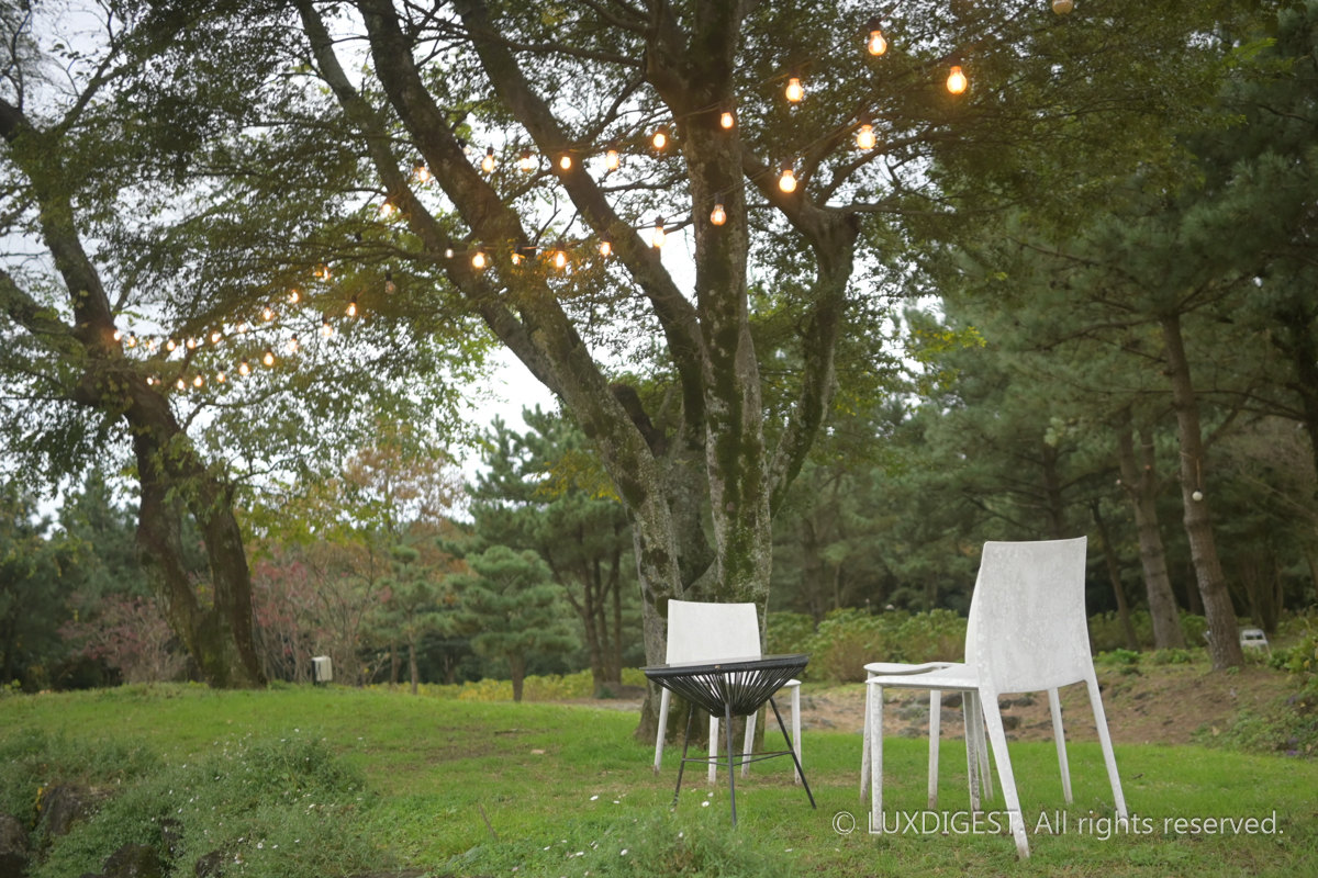 Cafe Glencoe is located in the inland central area of Jeju Island, not along the coast. It is surrounded by nature and designed around a spacious garden.